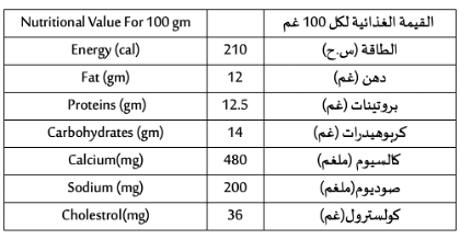 المكونات: حليب طازج ومبستر ، بادئة ، ملح طعام، مادة حافظة